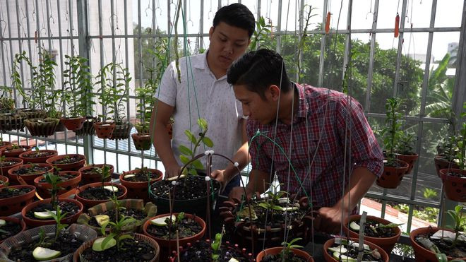 Chỉ vỏn vẹn 200 m2, vườn lan Giang Quốc Hùng (Q.Cái Răng, TP.Cần Thơ) do 3 thanh niên 9X sở hữu hiện có hơn 35 giống, với trên 300 chậu lan đột biến, trị giá hàng chục tỉ đồng.