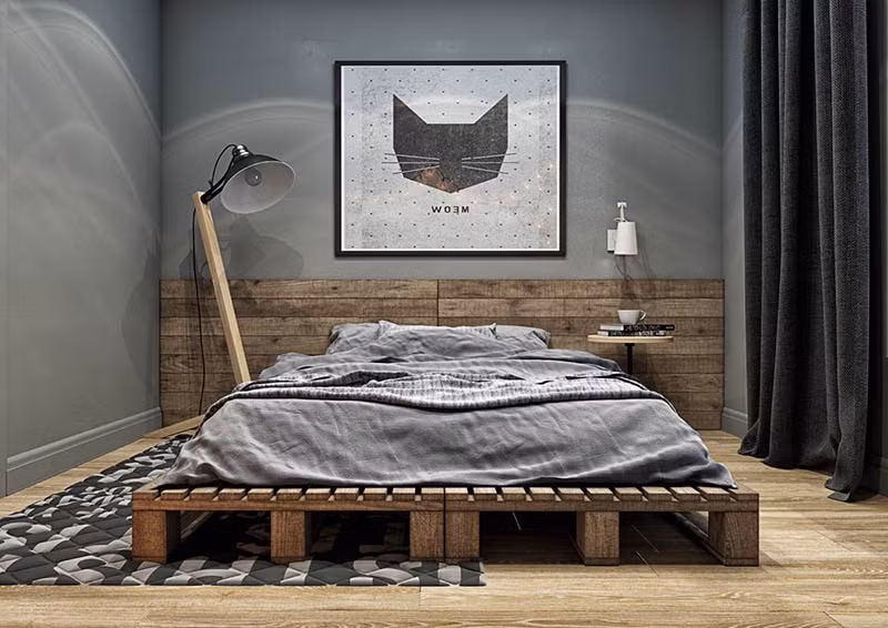 Thay vào đó, hãy chọn giường nhỏ gọn với kiểu dáng thanh mảnh để không lấn chiếm diện tích căn phòng. Những kiểu giường không chân, chẳng hạn như giường bệt hay giường tích hợp tủ lưu trữ bên dưới là lựa chọn lý tưởng cho phòng ngủ nhỏ vì tạo được cảm giác rộng rãi, thoáng đãng.