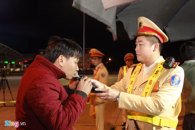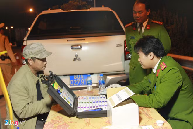 Cán bộ Cục CSGT kiểm tra tài xế trong chuyên đề dịp giáp Tết. Ảnh: Nguyễn Nhung.