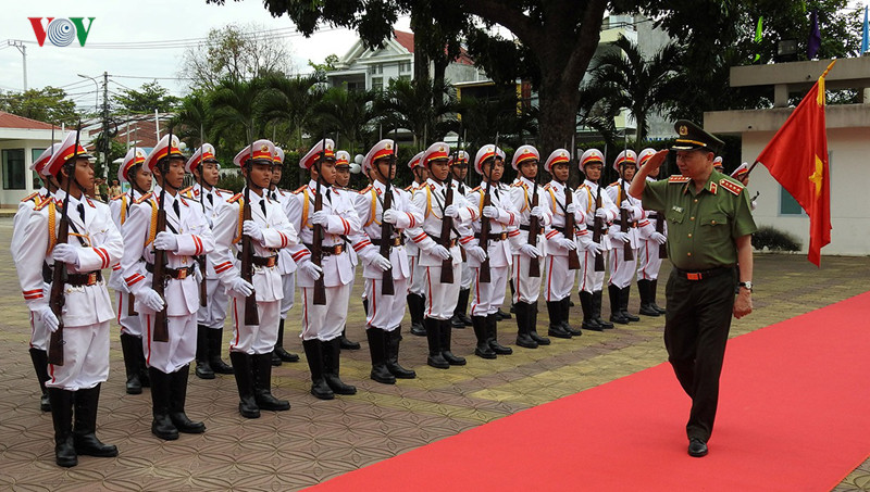 Đại tướng Tô Lâm duyệt đội danh dự Công an tỉnh Kon Tum.