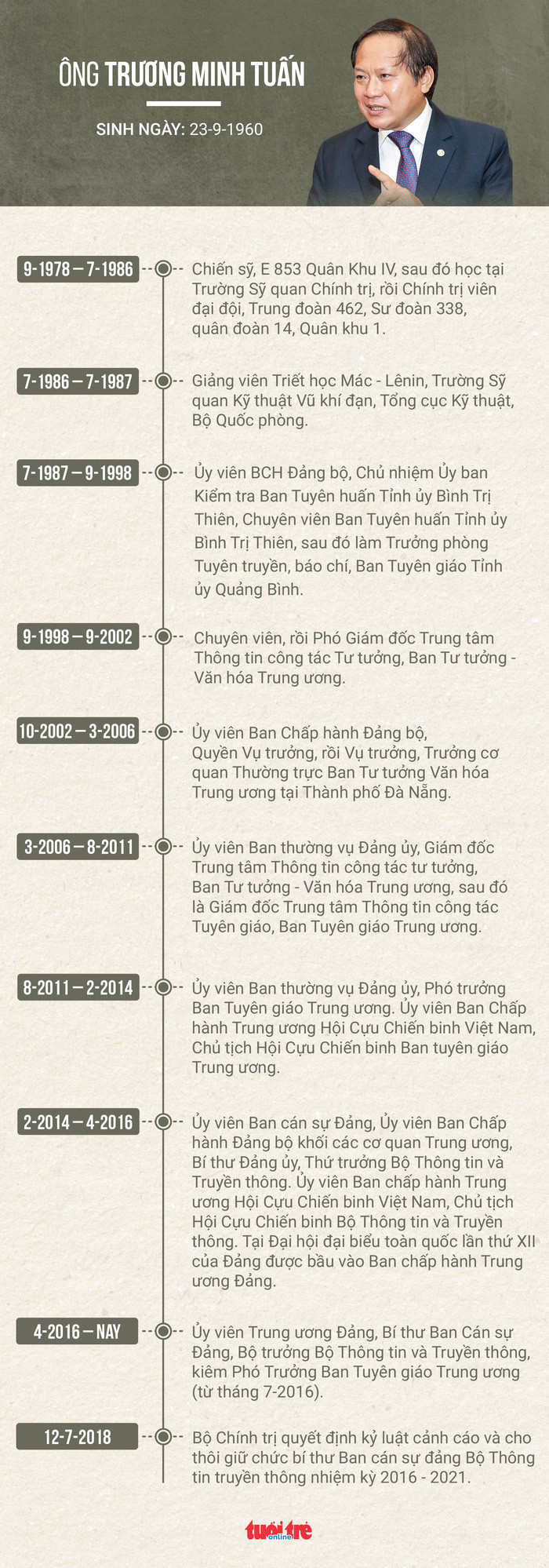 | Bộ trưởng Thông tin - truyền thông Trương Minh Tuấn bên hành lang kỳ họp thứ 5 Quốc hội khóa XIV hồi tháng 6-2018 |