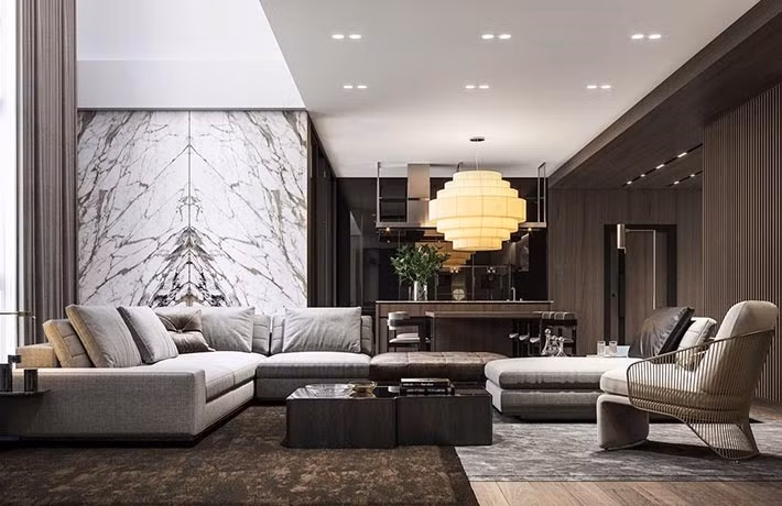 Thiết kế nội thất phòng khách lớn hơn 20m2