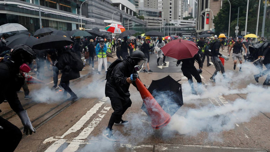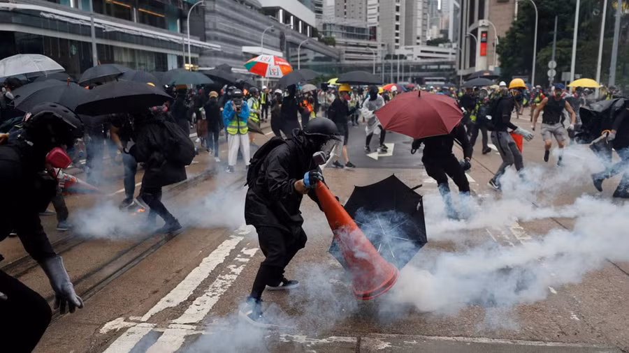 Biểu tình tại Hong Kong kéo dài nhiều tháng qua. Ảnh: Nikkei.