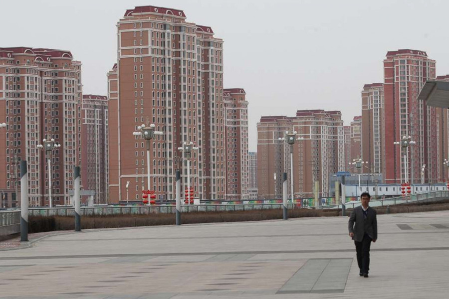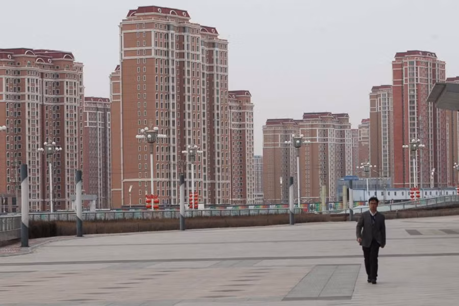 Một khu dân cư hoang vắng ở thành phố Ordos, Nội Mông. Việc chính quyền các địa phương ở Trung Quốc vay nợ ồ ạt để đầu tư vào hạ tầng đã tạo ra hàng loạt "thành phố ma" không có người ở. Ảnh: SCMP.