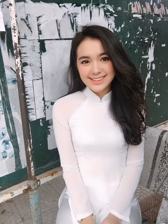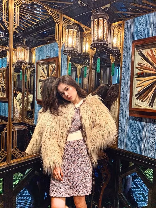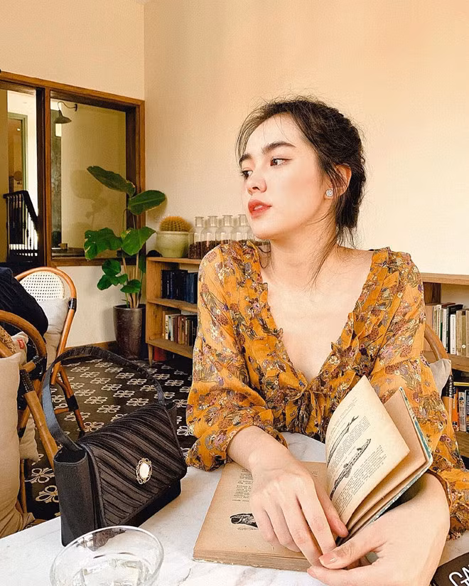 Nữ sinh sở hữu gương mặt thanh tú cùng lối ăn mặc thanh lịch. Cô bạn trung thành với mái tóc đen óng được uốn xoăn nhẹ.