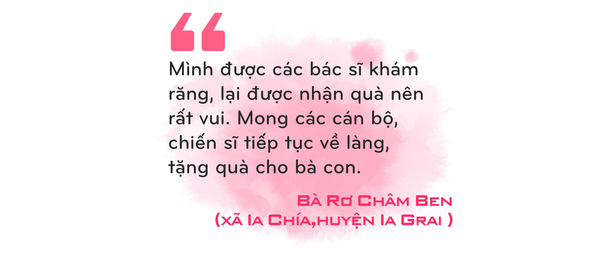 Tại chương trình, các tổ chức Đoàn đã trao tặng 17 suất quà cho các gia đình chính sách, hộ có hoàn cảnh khó khăn của xã Ia Chía; tặng 5 suất quà cho Công an viên có hoàn cảnh khó khăn; tặng 1 quả bóng chuyền cho Đoàn xã; tặng 20 cây xanh và 1 bản đồ Việt Nam cho Công an xã Ia Chía. Đoàn cơ sở Công an huyện Ia Grai tặng 34 bình chữa cháy cho người dân; Nha khoa thẩm mỹ Happy Smile (TP. Pleiku) khám răng miễn phí cho 50 người dân và thanh-thiếu niên của xã Ia Chía. Chương trình đã góp phần thắt chặt tình quân dân, thể hiện tình cảm ấm áp của cán bộ, chiến sĩ Công an. Nắm chặt tay chị Hiền, bà Rơ Châm Ben (làng Lang, xã Ia Chía) bày tỏ:
