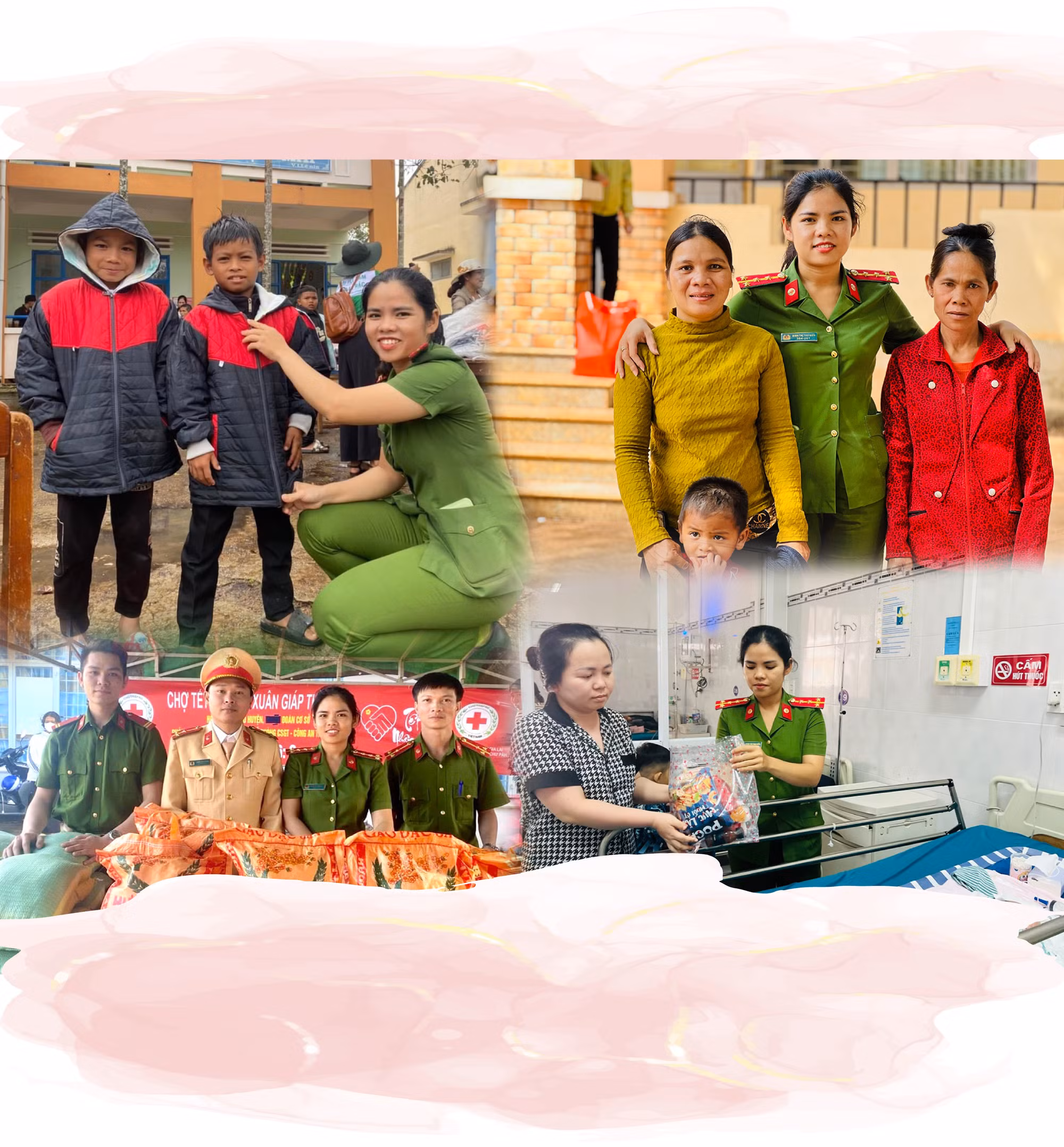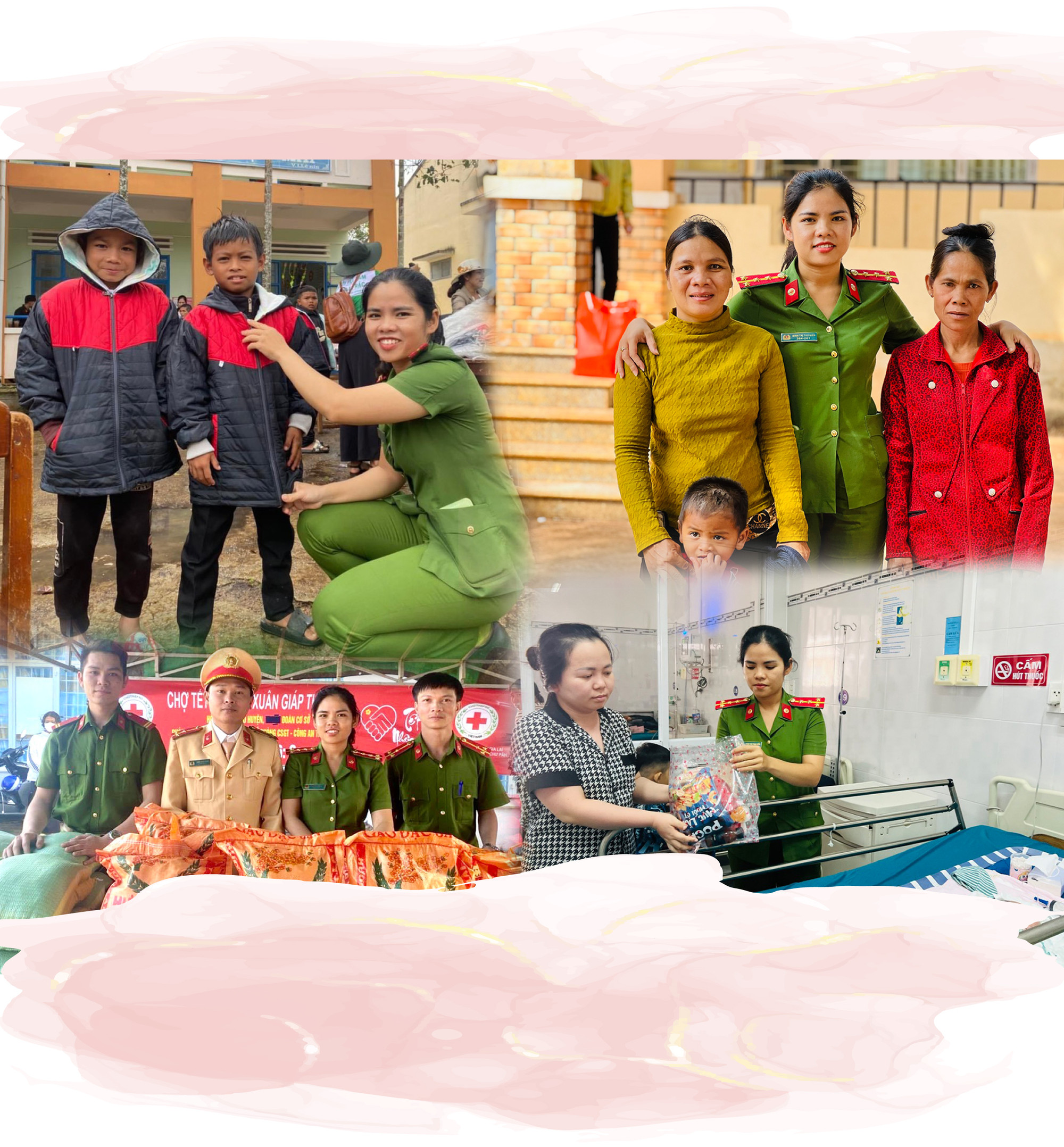 Một địa chỉ tình nguyện mà chị Hiền thường xuyên hướng đến là Bệnh viện Nhi tỉnh. Phần quà trao tặng các em là những gói bánh, quyển sách, đồ chơi. Các cán bộ, chiến sĩ còn cắt tóc và tổ chức trò chơi cho các em nhỏ. Khi được nhận quà và được hỏi về ước mơ trong tương lai, những đứa trẻ vây quanh chị Hiền rồi nói: “Con thích làm Công an, con sẽ gắng học tập thật giỏi để được như cô”, “Con mong hết bệnh để bố mẹ đỡ vất vả”… Chị Võ Thị Thanh Trúc-Cán bộ Tổ Công tác xã hội Bệnh viện Nhi tỉnh-chia sẻ: “Các bệnh nhi rất vui khi mỗi lần có các anh, chị đến tặng quà. Sự động viên này giúp các em có thêm niềm tin để vượt qua bệnh tật”.