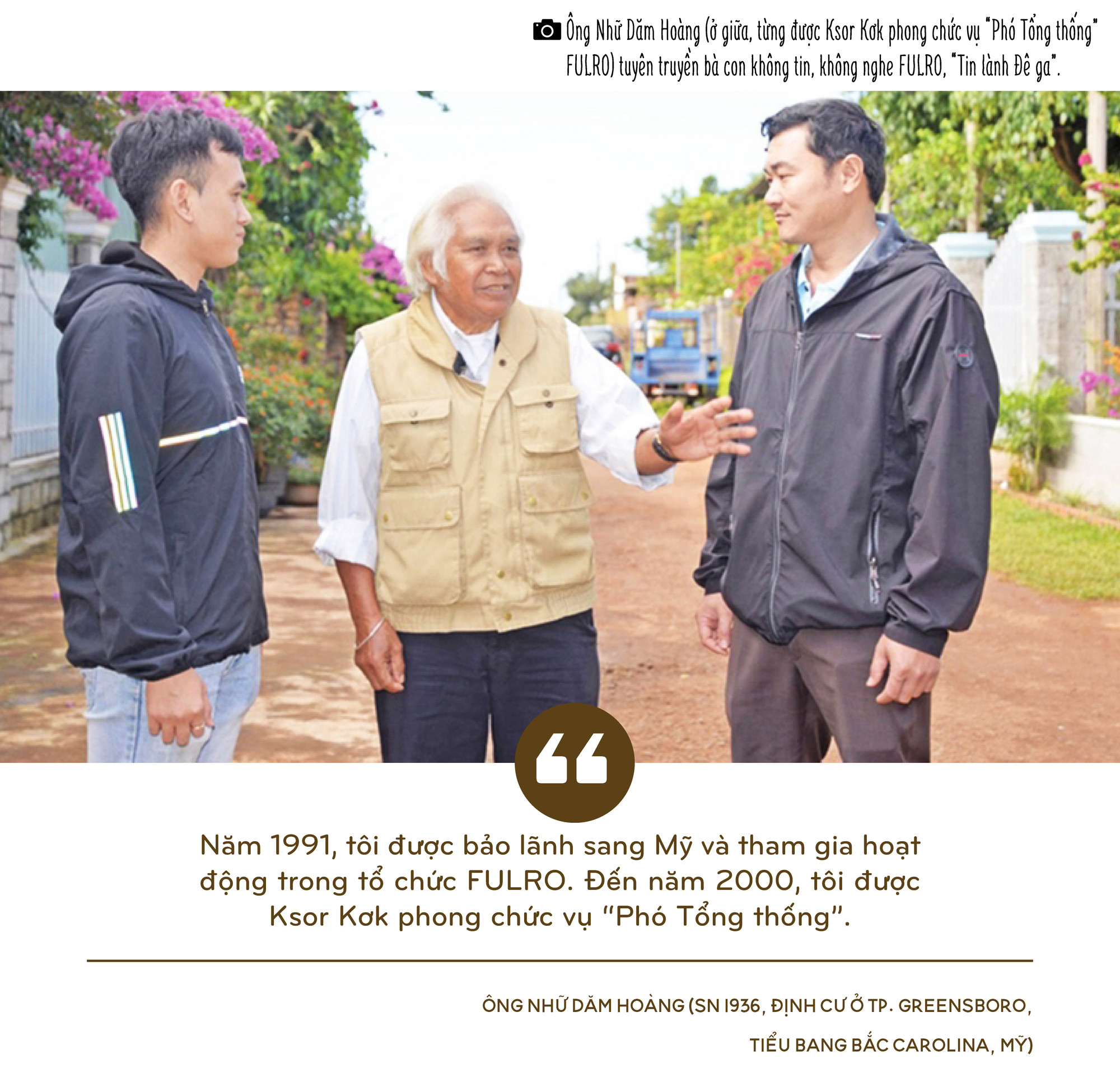 Dù đã được phong là “Phó Tổng thống” nhưng do không có tổ chức, cá nhân nào giúp đỡ về kinh tế, tôi phải vất vả mưu sinh nơi đất khách, làm nhân viên vệ sinh, rửa chén ở một bệnh viện tại TP. Greensboro. Nhận ra bộ mặt thật của FULRO, đến năm 2009, tôi quyết định từ bỏ tổ chức này”.