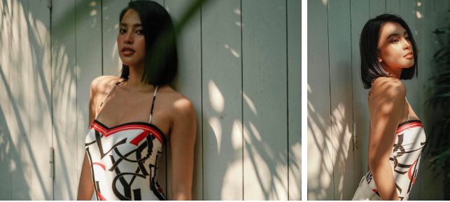 | Khoảnh khắc Á hậu Hoàng Thùy diện bikini họa tiết bắt mắt, tự tin tạo dáng trước ống kính. |