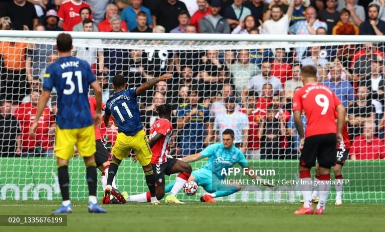 Một trong những tình huống tấn công của M.U đã được đền đáp ở phút 55. Pogba phối hợp với Bruno Fernandes trong vòng cấm địa Southampton, trước khi căng ngang để Greenwood dứt điểm chuẩn xác ghi bàn gỡ hòa.