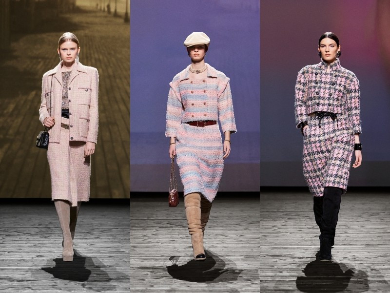 Tinh thần thoải mái không chút gò bó bao trùm lên toàn bộ các thiết kế. Bộ đồ vải tweed xuất hiện nhiều lần với đa dạng màu sắc và kiểu dáng, như một sự nhắc nhở về nét đặc trưng kinh điển của cái tên Chanel.