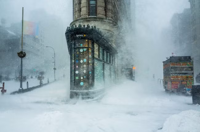 Tòa nhà Flatiron trong bão tuyết ở New York, Mỹ.