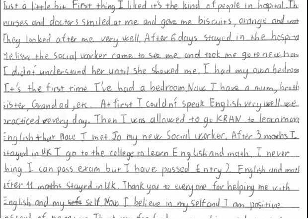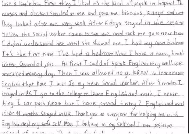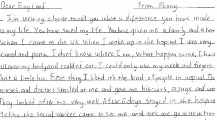 Một đoạn trong bức thư của Phong. Ảnh: Hội đồng hạt Kent
