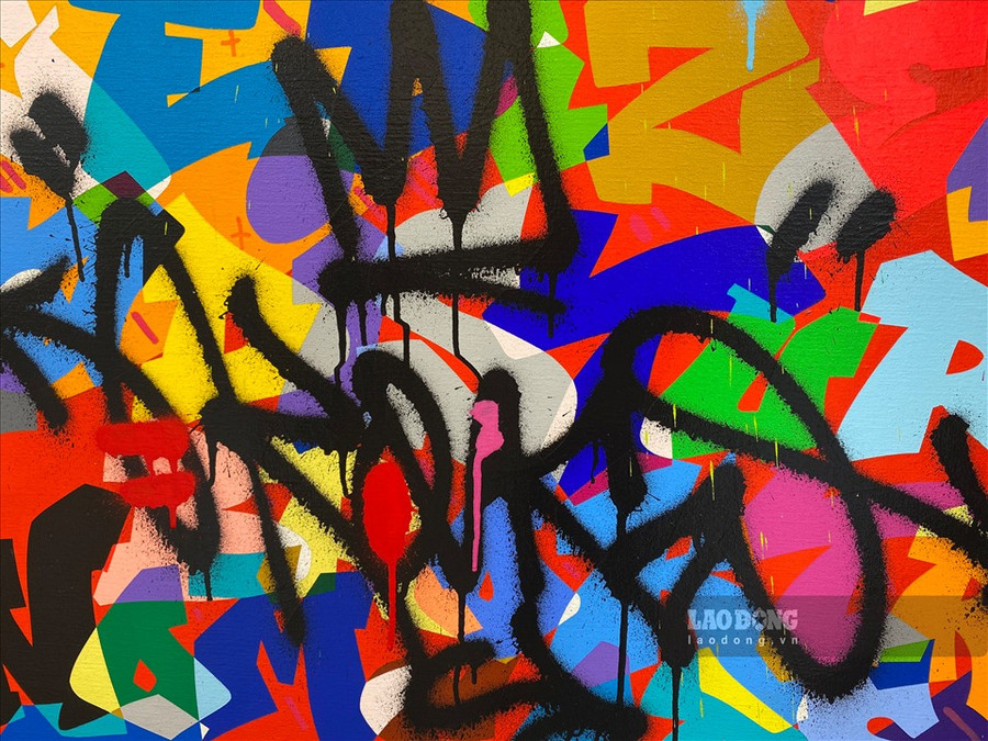 | Bức tranh Parisian trị giá hơn 2 tỉ đồng. Đây là sự tri ân của tác giả đến tất cả nghệ sĩ graffiti. Trên đó là tên của những người bạn, người đồng nghiệp luôn đồng hành cùng ông. |