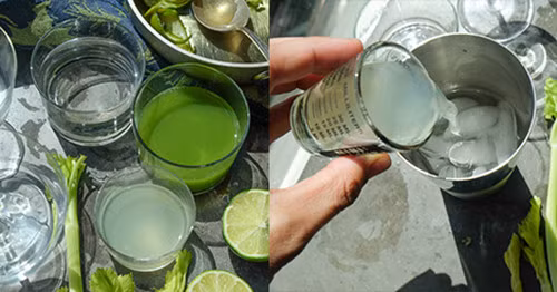 - Đổ nước ép cần tây, nước cốt chanh, nước vỏ chanh vào một cái bình rồi khuấy đều cùng với chút muối đến khi thu được hỗn hợp đồng nhất.