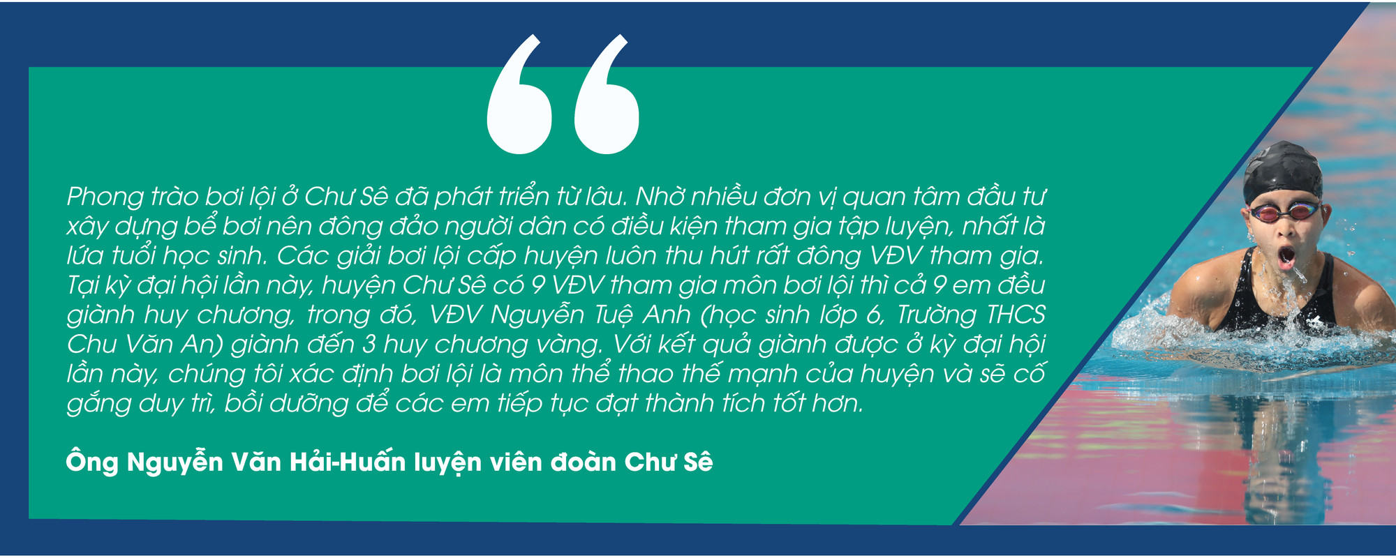 Từ những cuộc tranh tài ở “đường đua xanh” đã xuất hiện những nhân tố mới đầy hứa hẹn. Ở môn thi này, huyện Chư Sê đã xuất sắc giành 5 huy chương vàng, 4 huy chương bạc và 2 huy chương đồng. Đáng chú ý, các VĐV giành huy chương cho huyện Chư Sê đều trong lứa tuổi 12-16.