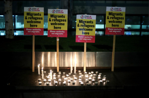 Người dân thắp nến tưởng niệm 39 người chết ở Essex, Anh, bên ngoài tòa nhà chính phủ ở London. Ảnh: REUTERS