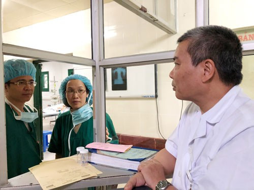 Bác sĩ Phạm Tiến Quân - Phó Khoa Phẫu thuật Tim mạch và Lồng ngực (BV Việt Đức) - chăm sóc cho bệnh nhân. Ảnh: Ngọc Dung