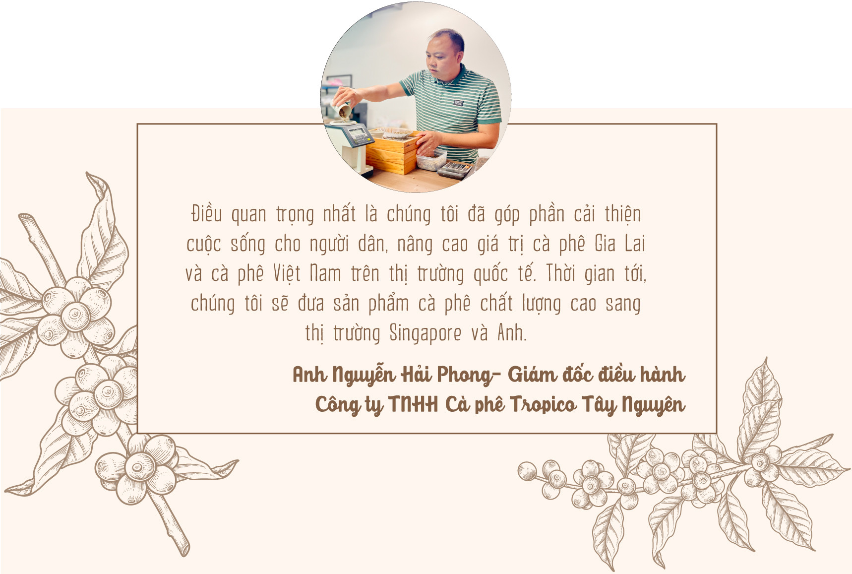 Công ty TNHH Cà phê Tropico Tây Nguyên do anh Nguyễn Hải Phong làm Giám đốc điều hành là một trong những đầu mối chính bao tiêu sản phẩm cho nhiều hộ dân cũng như hợp tác xã ở Gia Lai và Kon Tum. Đây là những nơi đã được anh Phong tìm hiểu, khảo sát và đánh giá là có khí hậu, thổ nhưỡng phù hợp để cho ra những hạt cà phê có chất lượng tốt, hương vị đặc trưng. Trung bình mỗi vụ, Công ty thu mua và sơ chế khoảng 260 tấn cà phê nhân xanh theo phương pháp Honey và Natural. Mỗi năm, Công ty xuất khẩu khoảng 200 tấn cà phê nhân xanh sang thị trường Nga và Oman. Anh Phong nhận định: “Cà phê chất lượng cao là loại cà phê được sản xuất theo hướng hữu cơ, sạch. Để nâng cao giá trị cà phê, đảm bảo cuộc sống ổn định của người trồng cần đẩy mạnh các chương trình sản xuất cà phê bền vững, cà phê chất lượng có các chứng nhận quốc tế. Sau nhiều năm nỗ lực, với thương hiệu Kopic Coffee, sản phẩm của Công ty đã có chỗ đứng trên thị trường”.