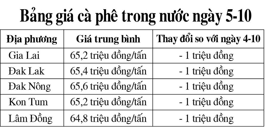 Đối với thị trường thế giới, giá cà phê ngày 5-10 giảm ở cả 2 sàn London và New York.