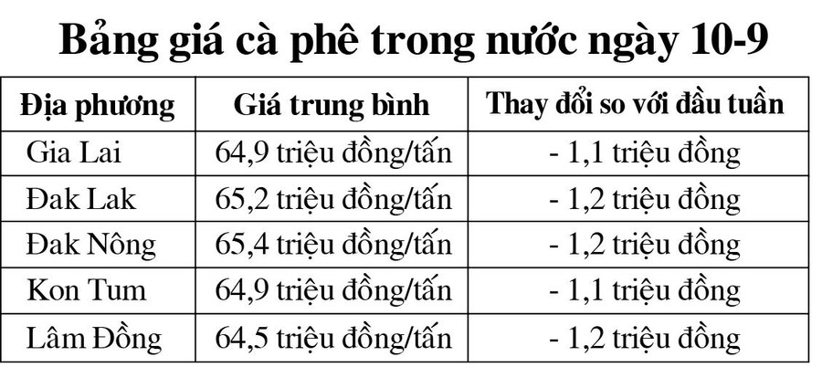 Đối với thị trường thế giới, giá cà phê ngày 10-9 giảm ở cả 2 sàn London và New York.