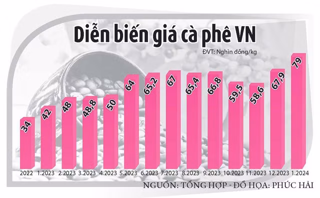 "Nhiều nhà kinh doanh cà phê cho biết trước đây khi hết cà phê, các nhà xuất khẩu vẫn đợi để vài ngày hoặc một tuần sau sẽ lại có. Nhưng điều đó không xảy ra trong năm 2023. Các nhà nhập khẩu cà phê rang xay Âu, Mỹ đã phải cử người đến VN, thăm kho dự trữ, vùng nguyên liệu để "giám sát nguồn cung"… nhưng tất cả đều trống rỗng. Và lúc này, tháng 1.2024, ngành cà phê tiếp tục có nhiều chuyện không ai ngờ tới… Đó là nguyên nhân mỗi ngày giá cà phê lại thiết lập một cột mốc mới", ông Thông lý giải.