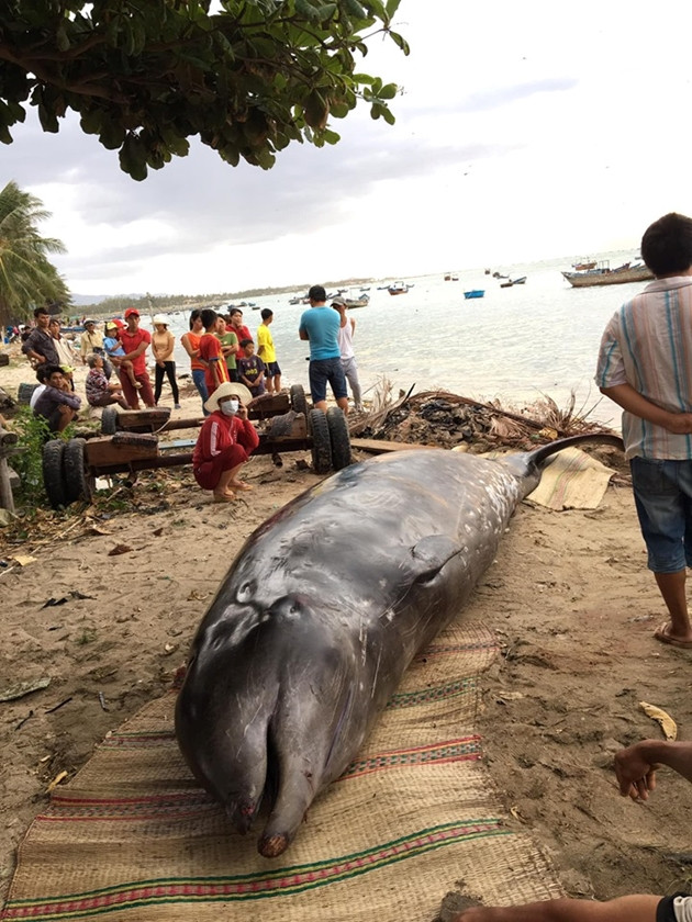 Cá voi khổng lồ dạt vào bờ biển Khánh Hòa