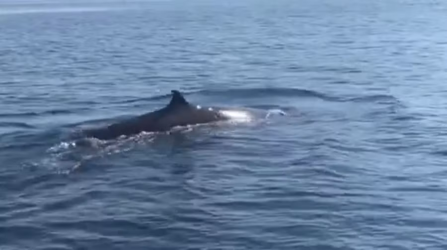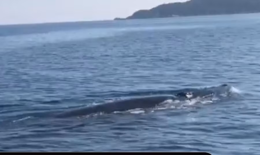 Con cá voi ước chừng nặng cả tấn, dài hơn 4 m bất ngờ xuất hiện, bơi lội ở khu vực biển Cù Lao Chàm (tỉnh Quảng Nam).