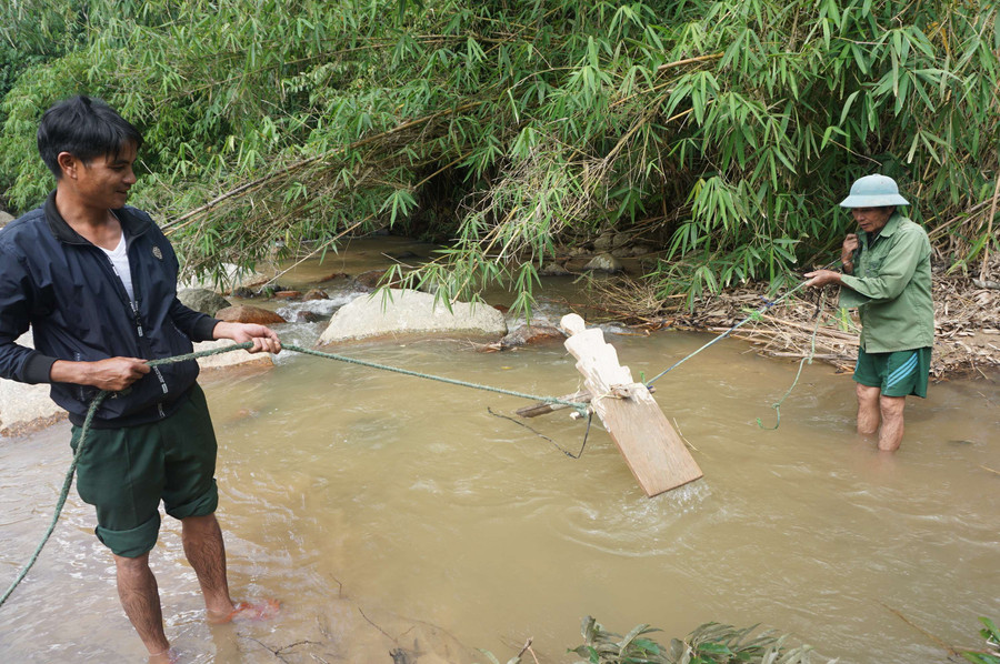 Hoàn thành tất cả các bộ phận cho chiếc “cà xạt” mới, già A Cho thủng thẳng lội xuống dòng suối, nước ngập ngang đầu gối đang chảy khá mạnh, để tìm vị trí thích hợp buộc “cà xạt”. Mò mẫm giữa lòng suối chừng khoảng 20 phút, già A Cho nói lớn với người con trai đang ở trên bờ: “A Thương à, chỗ này, này! Vừa có thể đón được dòng chảy của nước, lại nằm khuất sau phiến đá, không sợ cây cối từ đầu nguồn trôi xuống phá hỏng “cà xạt”.