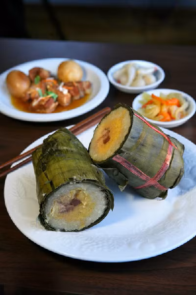 Bánh tét là món bánh trang trọng trên mâm cỗ Tết. Vào những ngày xuân, nhà nào cũng có một cặp bánh trên bàn thờ. Khách đến chơi nhà được mời khoanh bánh ngon, ăn kèm những lát dưa chua đậm đà thi vị.