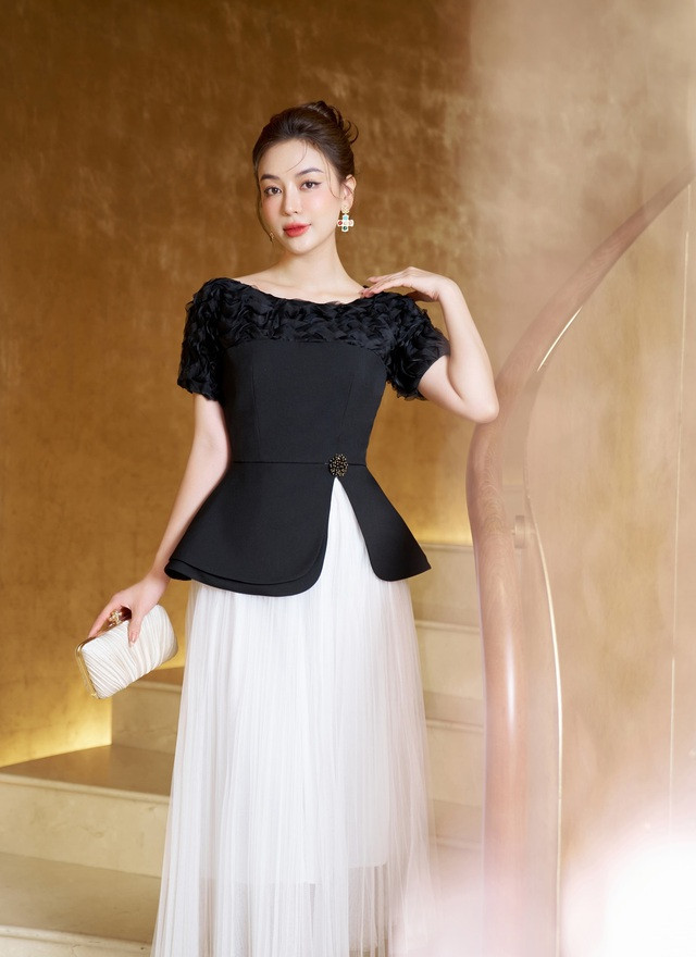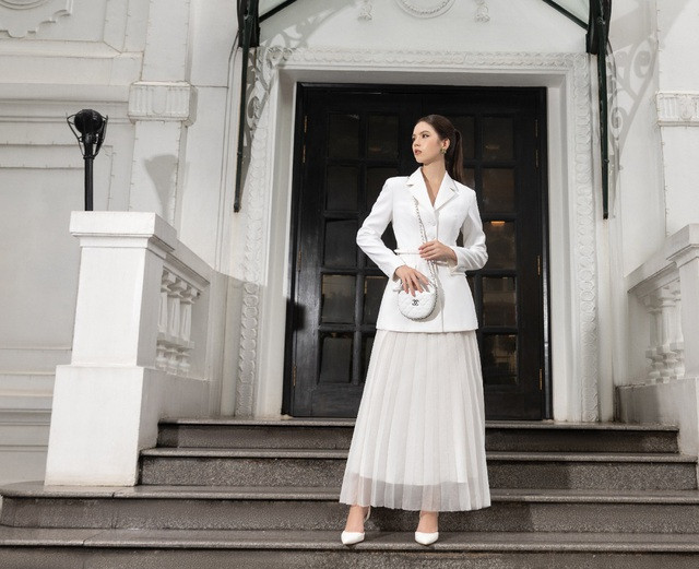 Với thiết kế tinh xảo trên chất liệu vải cao cấp cùng những đường nét thanh tú tôn lên vóc dáng ngọc ngà giúp quý cô tỏa sáng trong mọi cuộc chơi cũng như sự kiện quan trọng. Công thức mix match này với thiết kế áo blazer dáng dài khoe trọn vẻ ngoài chuyên nghiệp cùng chân váy tulle bồng bềnh tôn dáng cực đỉnh sẽ cùng quý cô tự tin xuống phố và khẳng định dấu ấn riêng