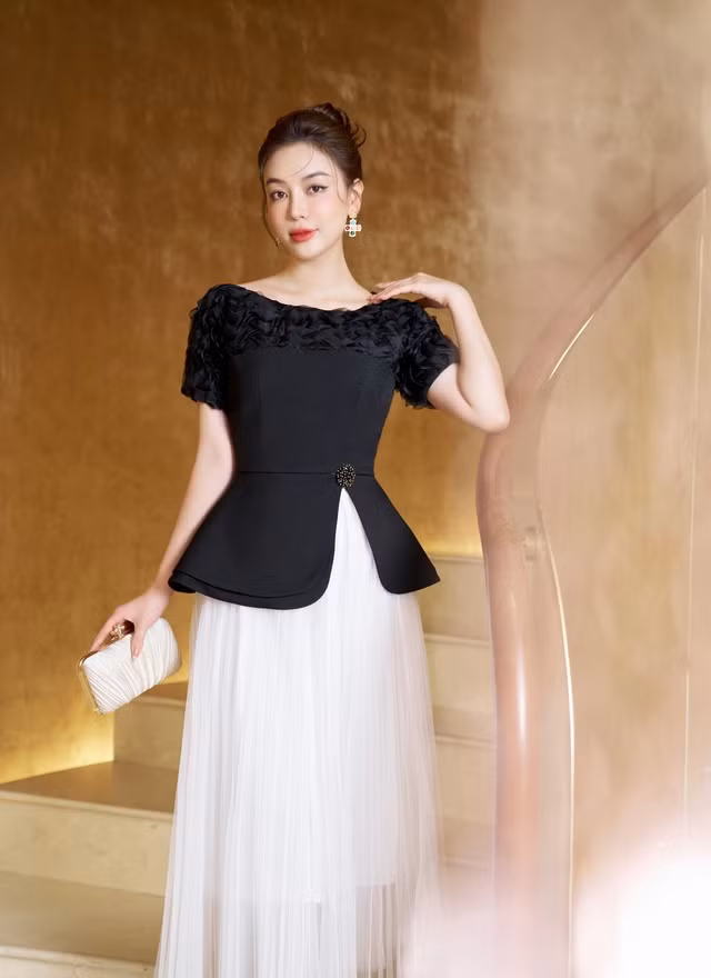 Khi thanh lịch không còn giới hạn trong khuôn khổ với những item cứng nhắc. Set đồ này đã khéo léo trong việc lựa chọn chất liệu cùng kiểu dáng xẻ tà trên nền vải kèm chi tiết đính họa tiết nịnh mắt. Chân váy dáng dài tulle xòe rộng giúp quý cô có thể thoải mái cả ngày mà không cảm thấy bí bách hay khó chịu