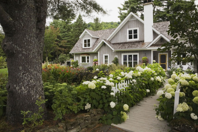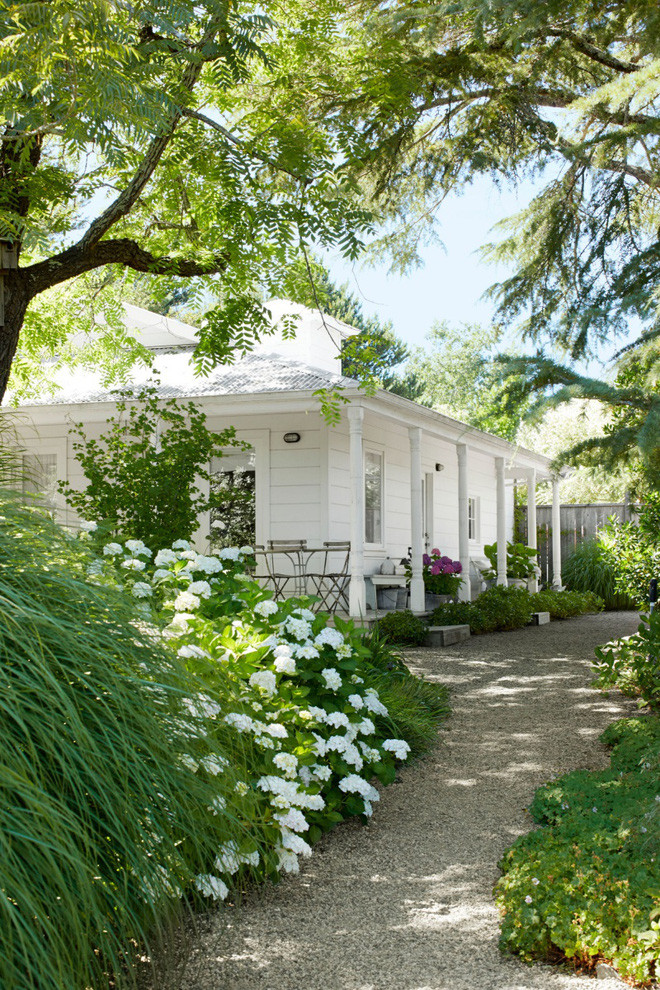 Trồng cẩm tú cầu dọc lối đi vào nhà giúp sân vườn rực rỡ và xinh đẹp.