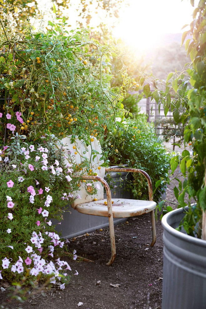 Tạo một góc nhỏ trông rau củ quả vừa cung cấp thực phẩm sạch vừa giúp khu vườn phía trước thêm đẹp hơn.