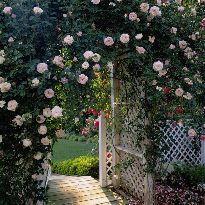 Trồng hoa leo trước cổng hay dọc theo hàng rào cũng là gợi ý tuyệt vời thổi hồn sức sống cho khu vườn quen thuộc.
