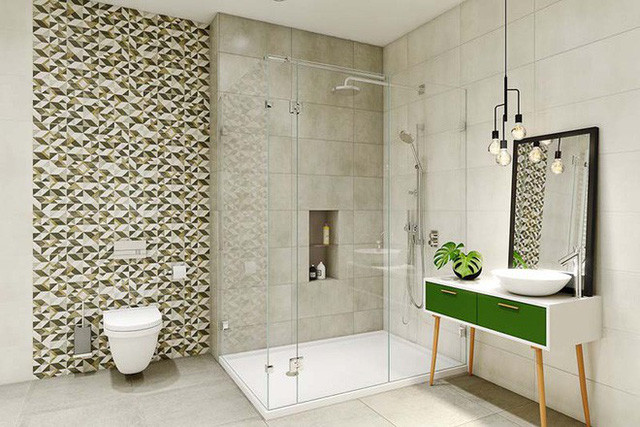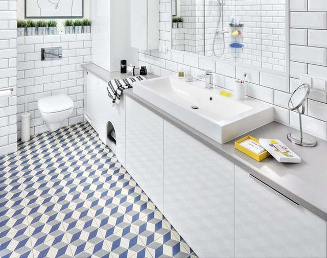 Bạn đừng bao giờ bỏ qua những mẫu gạch men ốp sàn họa tiết hình học cho không gian phòng tắm.