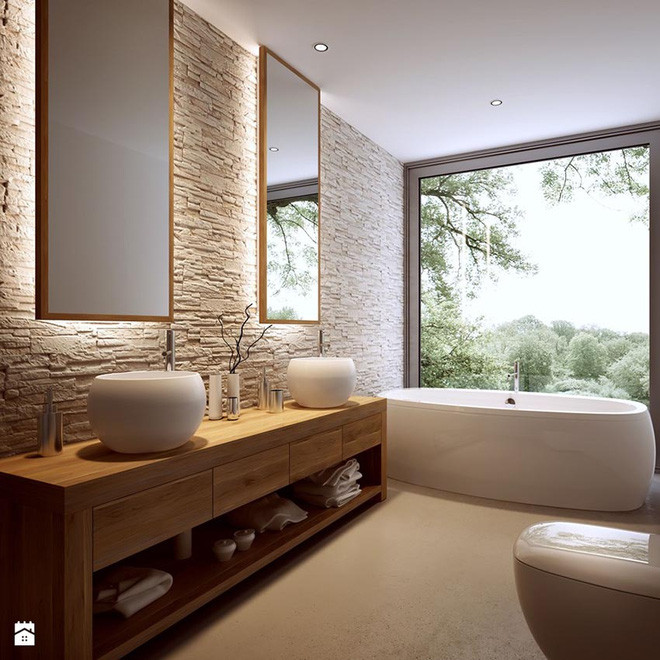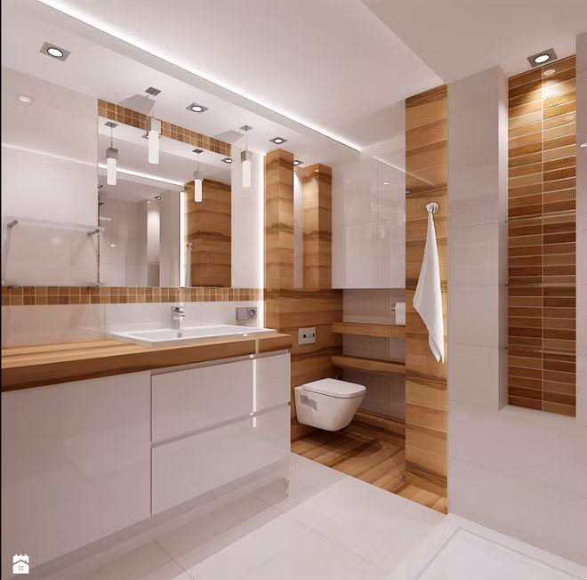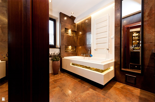 Căn phòng tắm của gia đình trông vừa hiện đại vừa sang trọng nhờ sự có mặt của hệ thống led âm.