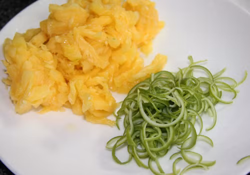 - Dứa gọt vỏ, cắt bỏ mắt và xắt hạt lựu hoặc xay nhuyễn tùy sở thích.
