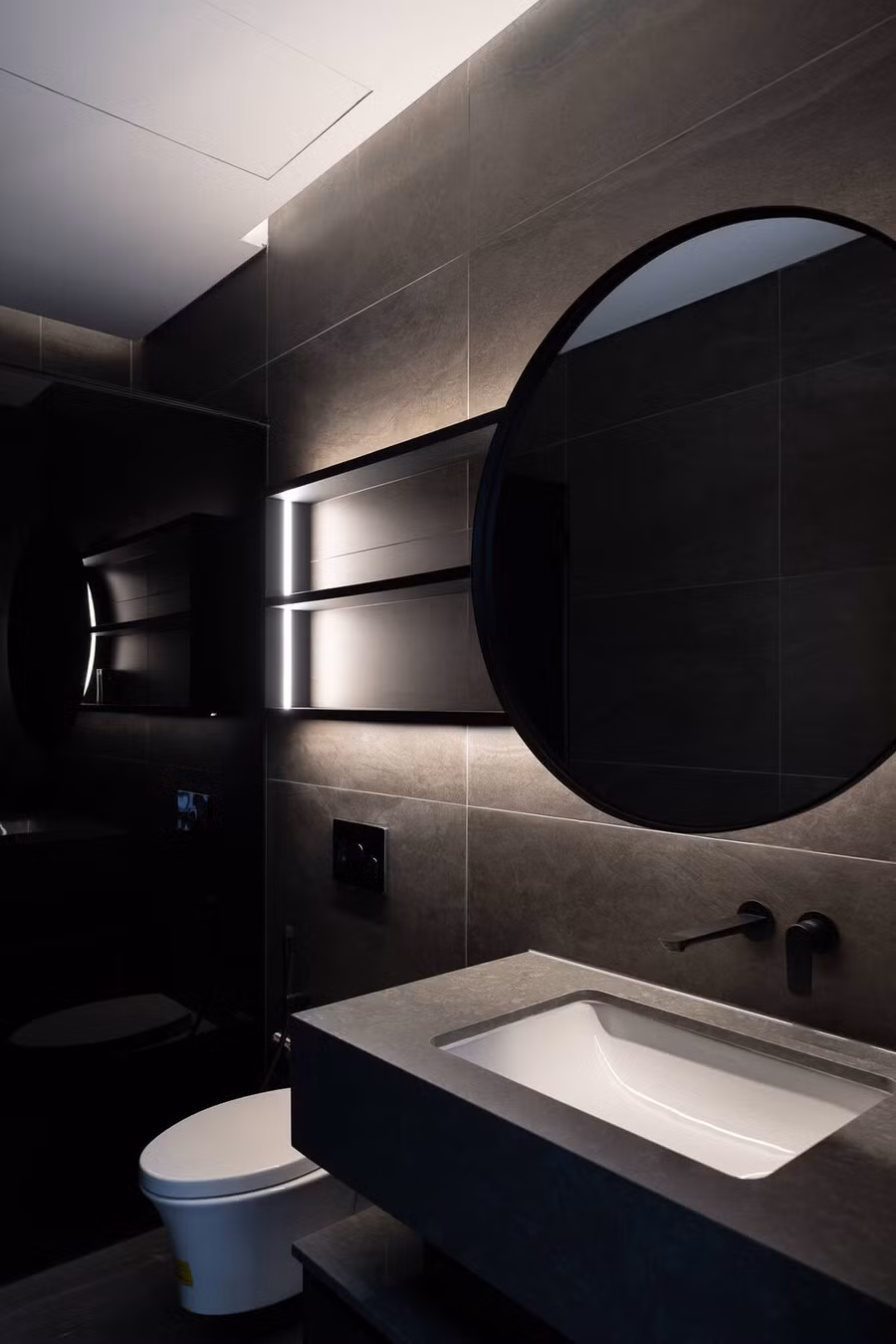 Ngôi nhà lấy màu đen làm chủ đạo. Đây được đánh giá là một lựa chọn táo bạo nhưng không hề nặng nề. Các gam đen với độ đậm nhạt khác nhau được thể hiện qua vật liệu: gỗ, thép, sơn, đá,... tạo nên sự chuyển biến nhịp nhàng và chiều sâu không gian. Ngôi nhà không gây cảm giác "u tối" mà ngược lại, mang đến một cảm giác hiện đại, tĩnh lặng và nghệ thuật, đúng như cá tính của chủ nhân.