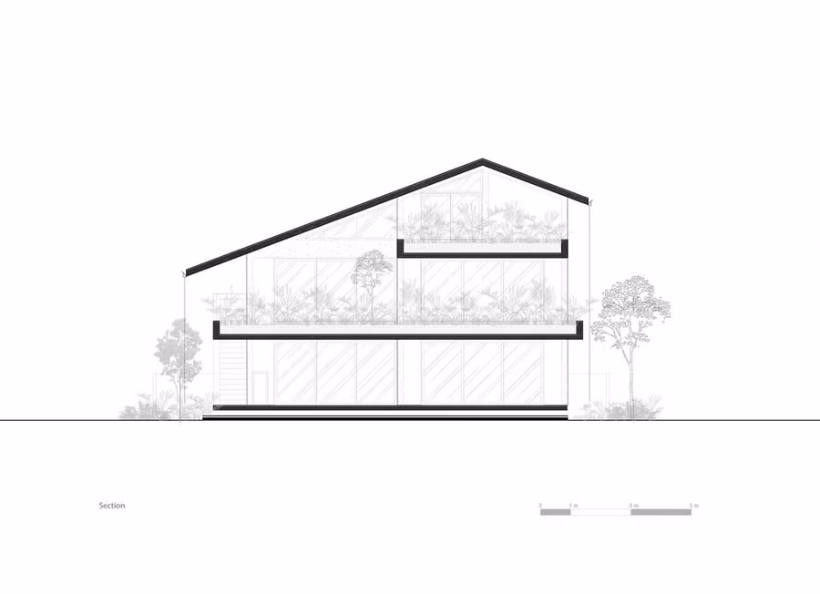| Do đó, các kiến trúc sư đã thiết kế khéo léo, để tích hợp các không gian động và tĩnh, tối ưu hóa mặt tiền hướng Tây dài 16m. |