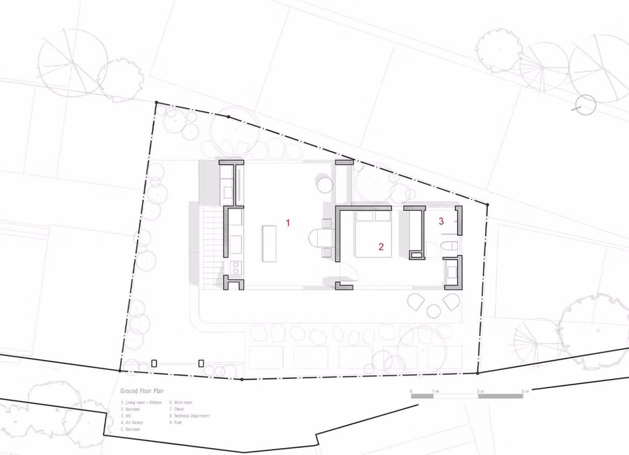 | Điểm nhấn của thiết kế là phòng vẽ, một không gian đa chức năng để vẽ, giảng dạy, triển lãm, đọc sách và thư giãn. Nội thất trong không gian này được thiết kế để thay đổi nhanh chóng và linh hoạt. |