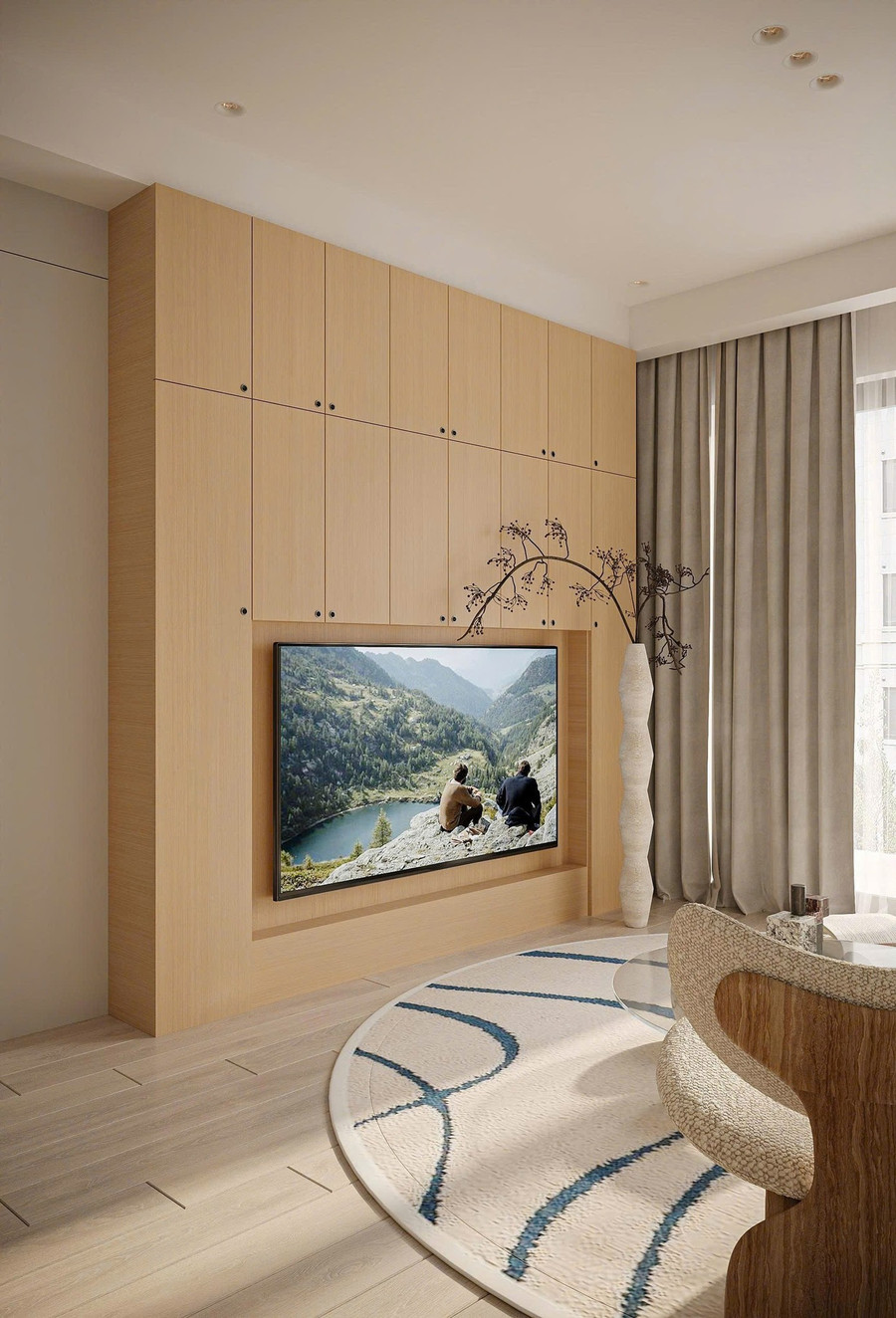 Bảng màu trung tính làm nền: trắng ấm, be, gỗ sáng… tạo cảm giác nhẹ nhàng, đầy chất nghệ thuật.