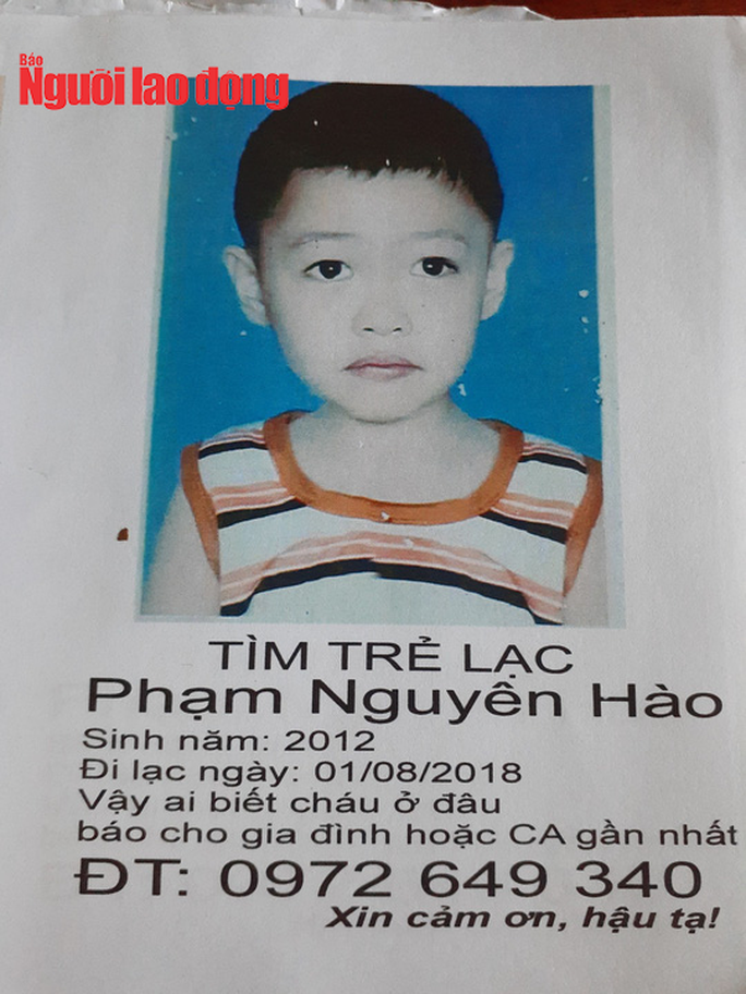 Cháu Phạm Nguyên Hào (SN 2012) là con trai duy nhất của anh Phạm Thanh Bình và chị Nguyễn Thị Diễm, cùng trú thôn 2, xã Diên Phú, TP Pleiku, tỉnh Gia Lai. Từ ngày 1-8-2018, cháu Hào bị mất tích bí ẩn khiến vợ chồng anh Phú phải rong ruổi khắp nơi để tìm nhưng đến nay vẫn chưa thấy.