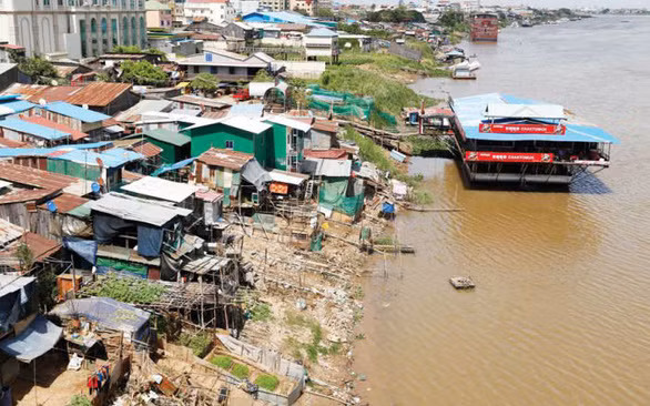 Nhà bên bờ biển hồ Tonle Sap - Ảnh: Phnom Penh Post