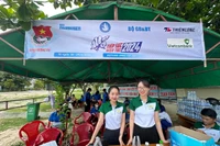 Ngoài nấu ăn, chị Nô En còn hỗ trợ công tác tình nguyện tại điểm thi Trường THPT Lê Hoàn, nước uống được bố trí đầy đủ tại điểm thi để phục vụ miễn phí cho thí sinh khi cần thiết. Một số thí sinh đến muộn, chị Nô En cùng các tình nguyện viên kịp thời liên lạc với gia đình hoặc đến trực tiếp tại nhà để đón các em đến điểm thi kịp giờ.