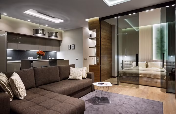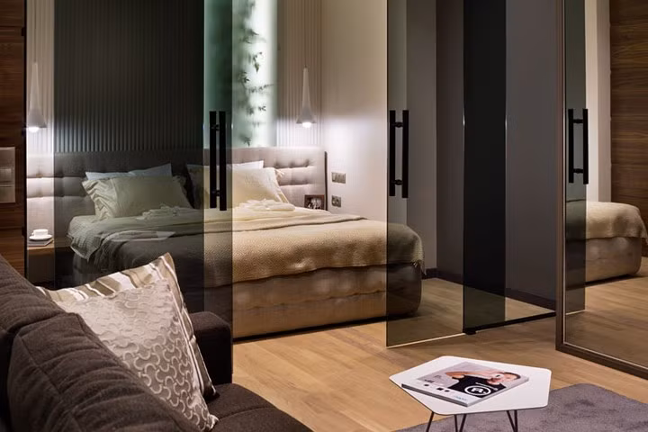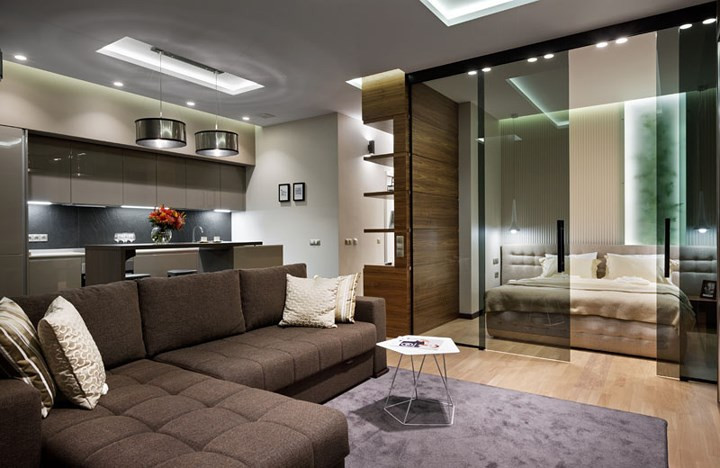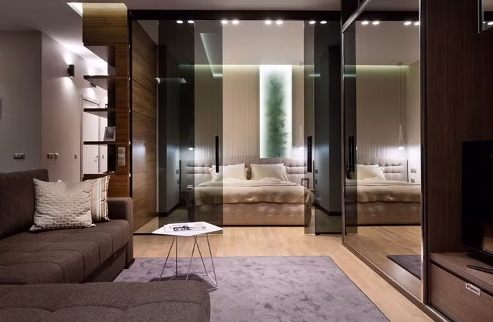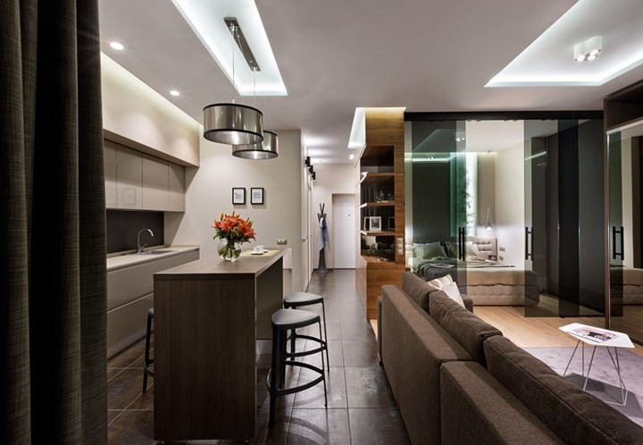 Một căn hộ nhỏ nhưng tuyệt đẹp nhờ thiết kế thông minh, sử dụng vật liệu thủy tinh mang đến cảm giác không gian rộng lớn hơn.