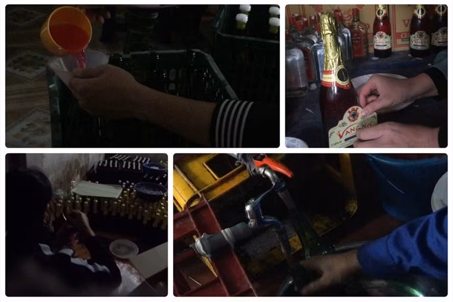 Trong khoảng 30 phút, hàng trăm chai rượu thành phẩm được pha chế với công thức trên, chúng liền được dán tem, nhãn, quảng cáo là sâm panh và rượu vang nho hảo hạng.