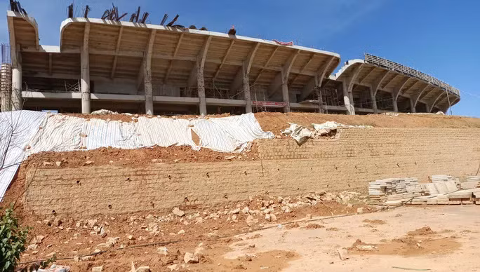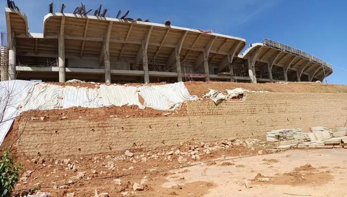 Sân vận động Đà Lạt có sức chứa gần 20.000 chỗ ngồi, hiện vẫn ngổn ngang.