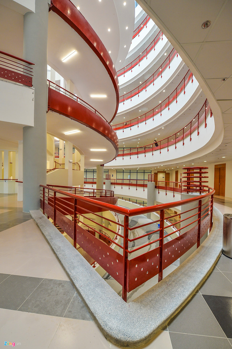 Tòa nhà 10 tầng có 147 phòng chức năng bao gồm phòng học, phòng bảo vệ luận văn tiến sĩ, thạc sĩ, phòng học nhóm… cùng 6 thang máy.