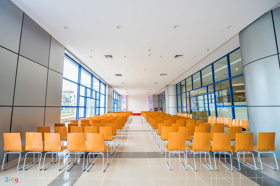 Phòng hội thảo được bày trí đẹp mắt ngay tầng một.